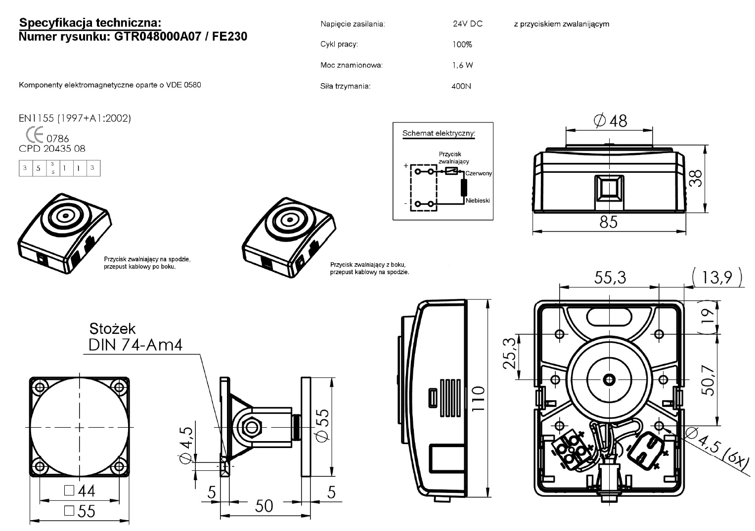 Chwytak magnetyczny GTR0480008 to element przytrzymujący drzwi w otwartej pozycji, który zwalnia się po odcięciu zasilania lub impulsie sterującym. Jego kompaktowa forma sprawdza się w przestrzeniach, gdzie liczy się dyskretny i niezawodny mechanizm.