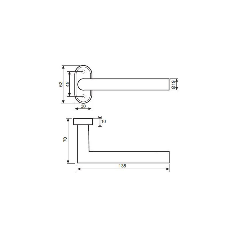 Klamka INOX 106, stal nierdzewna, owalny szyld, klasyczny kształt. Sprężyna zwrotna, trzpień 8 mm. Płynne działanie, montaż na nitonakrętki w profilach aluminiowych.