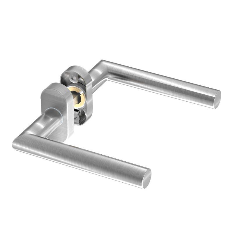 Model INOX 106, podobnie jak 102, wykonany jest ze stali nierdzewnej i posiada owalny szyld o klasycznym kształcie. Dzięki zwrotnej sprężynie oraz standardowemu trzpieniowi 8 mm klamka działa płynnie, co docenią zarówno użytkownicy indywidualni, jak i obiekty publiczne. Montaż w profilach aluminiowych usprawnia zastosowanie nitonakrętek, a w razie konieczności zmiany typu wkładki dostępne są dodatkowe akcesoria, takie jak rozetki czy redukcje trzpienia.